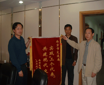 南京市交通局有關(guān)領(lǐng)導(dǎo)熱情接待了會(huì)員。交通局宣教處處長(zhǎng)蔣蘊(yùn)翔、調(diào)研員何蘊(yùn)銘、省交通廳駐寧杭高速公路紀(jì)檢組組長(zhǎng)胡春堂等出席了本次活動(dòng)。南京市交通系統(tǒng)“廉潔奉公十佳”代表,公路管理處項(xiàng)目總指揮方中明、市交通工程總公司副總經(jīng)理譚開(kāi)一、市交通技師學(xué)院院長(zhǎng)助理張言喜分別介紹了自己在交通工程建設(shè)、物資采購(gòu)等工作中堅(jiān)持廉潔自律、克己奉公,以實(shí)際行動(dòng)努力實(shí)踐“三個(gè)代表”重要思想的模范事跡,給全體會(huì)員上了一堂生動(dòng)的黨風(fēng)黨紀(jì)教育課。會(huì)員代表陶靜發(fā)言表示,作為學(xué)生干部要向廉潔奉公的黨員干部學(xué)習(xí),樹(shù)立正確的地位觀、權(quán)力觀、利益觀,努力踐行“三個(gè)代表”,全心全意為同學(xué)服務(wù)。組宣部副部長(zhǎng)、研究會(huì)常務(wù)副會(huì)長(zhǎng)陸禮在發(fā)言中向市交通局領(lǐng)導(dǎo)表示了衷心的感謝,并向市交通局贈(zèng)送了“實(shí)踐三個(gè)代表,共建現(xiàn)代交通”的錦旗。
