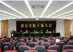 根據(jù)省委組織部和省交通廳黨組的統(tǒng)一安排,學(xué)院于2月18日召開全體干部大會(huì)。省交通廳黨組書記、廳長潘永和,省委組織部干部五處處長蘇春海,淮安市副市長史國君,省交通廳政治處處長汪祝君蒞臨大會(huì)。學(xué)院全體中層以上干部、高級(jí)職稱教師到會(huì)參加。