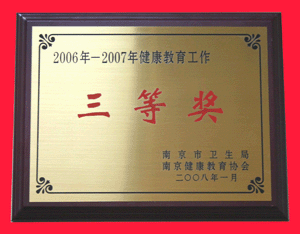 近日,南京市衛(wèi)生局、健康教育協(xié)會召開了南京市2006-2007年度健康教育工作總結(jié)表彰大會。我院在本次表彰中榮獲“南京市2006-2007年度健康教育工作三等獎”。