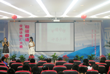 9月22日晚,由學院語言文字工作委員會主辦、院團委和人文社科系共同承辦的“和諧母語”普通話推廣大賽在明德樓報告廳舉行。學院副院長高進軍、王曉農(nóng)、院語言文字工作委員會領導和各系黨總支書記、副書記應邀出席比賽。學院具有省級普通話測試員資格的部分老師擔任比賽評委。