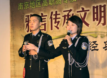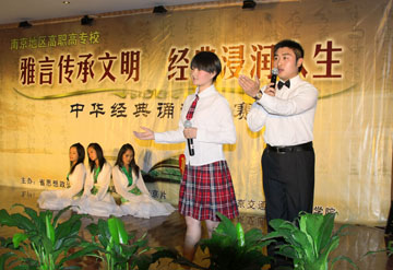 經(jīng)過(guò)激烈角逐,學(xué)院參賽作品《汩羅魂—端午祭屈原》榮獲一等獎(jiǎng);《春江花月夜》(南京鐵道職業(yè)技術(shù)學(xué)院)、《祝福春節(jié)》(江蘇海事職業(yè)技術(shù)學(xué)院)、《將進(jìn)酒》(南京森林公安高等專(zhuān)科學(xué)校)榮獲二等獎(jiǎng);《岳陽(yáng)樓記》(南京化工職業(yè)技術(shù)學(xué)院)、《破陣子•燕子來(lái)時(shí)新社》(鐘山職業(yè)技術(shù)學(xué)院)、《春江花月夜》(南京森林公安高等專(zhuān)科學(xué)校)、《八月十五日夜桃源玩月》(鐘山職業(yè)技術(shù)學(xué)院)、《詠月古詩(shī)詞》(南京特殊教育職業(yè)技術(shù)學(xué)院)榮獲三等獎(jiǎng)。蒞臨現(xiàn)場(chǎng)觀看比賽的領(lǐng)導(dǎo)為獲獎(jiǎng)選手及優(yōu)秀指導(dǎo)老師頒了獎(jiǎng)。
