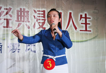 比賽共有38名選手參加。19個(gè)參賽篇目中,有激情高昂的愛(ài)國(guó)頌詞,有優(yōu)雅淡定的鄉(xiāng)愁余韻,有發(fā)自肺腑的真情吟唱,有熱情洋溢的青春贊歌。選手們相繼登臺(tái),一展風(fēng)采,朗朗書(shū)聲盡顯經(jīng)典詩(shī)文的音韻之美、情勢(shì)之美、意境之美?,F(xiàn)場(chǎng)觀眾一度沉醉于古典意蘊(yùn)與時(shí)代風(fēng)采的和諧共鳴。