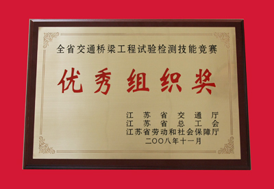 11月9日,學(xué)院被江蘇省交通廳、江蘇省總工會、江蘇省勞動和社會保障廳聯(lián)合授予“全省交通橋梁工程試驗(yàn)檢測技能競賽優(yōu)秀組織獎”。