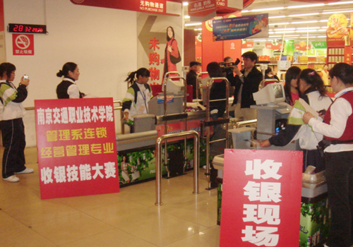 11月3日下午,學(xué)院第六屆學(xué)生實(shí)踐技能大賽管理工程系競(jìng)賽項(xiàng)目之一——“連鎖企業(yè)收銀技能競(jìng)賽”在北京華聯(lián)超市江寧店圓滿舉行。北京華聯(lián)超市江寧店負(fù)責(zé)人及部門主管擔(dān)任評(píng)委和現(xiàn)場(chǎng)點(diǎn)評(píng)專家,學(xué)院教務(wù)處相關(guān)負(fù)責(zé)人及系領(lǐng)導(dǎo)全程觀看了比賽。