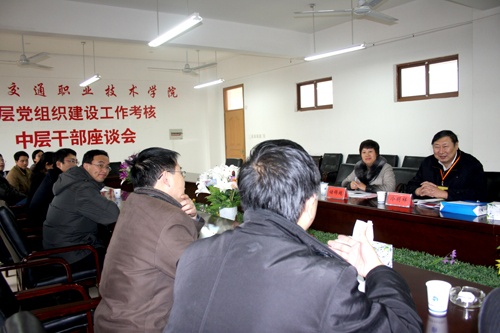 12月15日上午8:30,省委教育工委基層黨組織建設(shè)工作考核組專(zhuān)家、南京醫(yī)科大學(xué)黨委組織部部長(zhǎng)冷明祥和江蘇經(jīng)貿(mào)職業(yè)技術(shù)學(xué)院組織人事處處長(zhǎng)儲(chǔ)錦超在明德樓403會(huì)議室召開(kāi)中層干部座談會(huì)。汽車(chē)工程系主任楊益明、管理工程系主任祁洪祥、電子信息工程系主任宋維堂、圖書(shū)館館長(zhǎng)畢朝暉、團(tuán)委書(shū)記吳兆明、機(jī)電工程系主任沈旭、機(jī)械部主任游心仁、教務(wù)處副處長(zhǎng)劉陽(yáng)、公路工程系副主任樊琳娟、體育教研部主任史立峰、人事處副處長(zhǎng)毛慧玲等中層干部參加了座談會(huì)。
