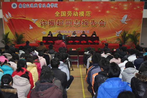 報告會開始前,黨委書記孟祥林代表學院致辭。孟書記說,非常歡迎許振超同志走進南京交院。許振超同志是知識工人的楷模,是廣大學子學習的榜樣,他在平凡的崗位上勤奮工作,勇于創(chuàng)新,做出了不平凡的業(yè)績。他強烈的責任心,過硬的本領(lǐng)技能,獨特的人格魅力以及愛崗敬業(yè)、崇尚科學、追求卓越的精神將成為激勵交院學子奮發(fā)向上的不竭動力。