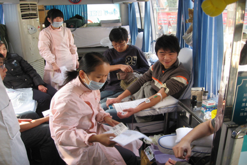 采血工作期間,院黨委副書(shū)記許正林在學(xué)工處負(fù)責(zé)人的陪同下親臨現(xiàn)場(chǎng)視察獻(xiàn)血志愿服務(wù)工作,看望、慰問(wèn)獻(xiàn)血同學(xué);學(xué)生工作處、后勤服務(wù)中心以及各系黨總支周密部署,有力地保障了采血工作的順利進(jìn)行;院紅十字會(huì)和青年志愿者協(xié)會(huì)在現(xiàn)場(chǎng)為同學(xué)們發(fā)放并指導(dǎo)填寫(xiě)體檢表,為獻(xiàn)血同學(xué)提供引領(lǐng)服務(wù)、發(fā)放熱飲料、照顧暈血同學(xué)、發(fā)放獻(xiàn)血禮品等大量切實(shí)有效的服務(wù)工作。