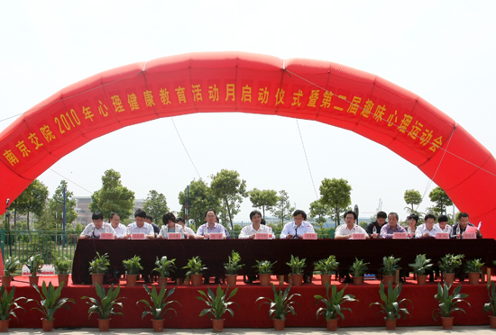 孟書(shū)記宣布學(xué)院2010年心理健康教育活動(dòng)月暨第二屆趣味心理運(yùn)動(dòng)會(huì)開(kāi)幕。許正林副書(shū)記就做好學(xué)院心理健康教育工作提出了幾點(diǎn)希望和要求:一是以本次活動(dòng)月為契機(jī)進(jìn)一步加強(qiáng)心理健康教育宣傳工作;二是全體教職員工要走進(jìn)學(xué)生的心靈,用心做好學(xué)生心理健康教育工作;三是繼續(xù)加強(qiáng)心理健康教育隊(duì)伍、危機(jī)干預(yù)和心理咨詢(xún)體系建設(shè);四是希望同學(xué)們樹(shù)立自我防護(hù)心理健康意識(shí),不斷完善自我。