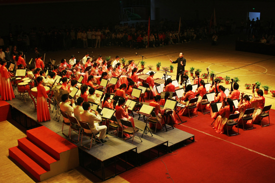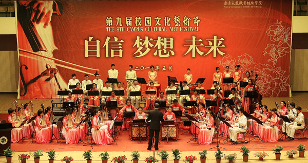 來自南京醫(yī)科大學的民族樂團以其嫻熟的技藝,先后演奏了民樂合奏《春節(jié)序曲》、《臺灣隨想曲》、《幸?;ā?,絲竹小合奏《春江花月夜》,二胡齊奏《新賽馬》,琵琶與打擊樂《霸王卸甲》,竹笛獨奏《春到湘江》,鼓樂合奏《龍騰虎躍》等十首曲目。演出由江蘇藝術(shù)劇院著名演奏家,南京醫(yī)科大學民族樂團常任指揮、藝術(shù)總監(jiān)盧小新指揮。