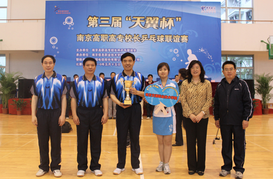 5月15日,第三屆“天翼杯”南京地區(qū)高職高專院校校長乒乓球聯(lián)誼賽在南京信息職業(yè)技術(shù)學(xué)院舉行。南京地區(qū)14所高職高專院校參加了比賽。學(xué)院黨委書記孟祥林,院長賈俐俐,副院長高進軍、周傳林,紀委書記應(yīng)海寧組成的代表隊參加了此次比賽,并取得了團體第五名的好成績。