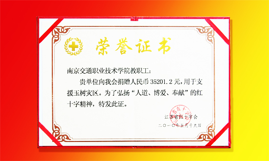 玉樹地震發(fā)生后,學(xué)院師生積極響應(yīng)院黨委號(hào)召,踴躍為玉樹抗震救災(zāi)捐款捐物。學(xué)院已于日前將師生所捐款項(xiàng)35201.2元交至江蘇省紅十字協(xié)會(huì)。截至目前,援助活動(dòng)仍在進(jìn)行中。
