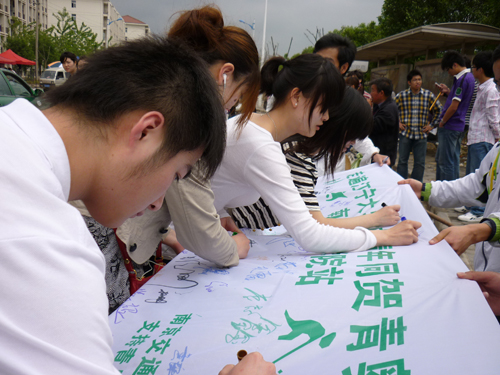 為向江寧大學城全體大學生展示、推廣南京的歷史文化、人文精神,表達南京青年歡迎世界的熱情,更好地突出“讓青年走進奧運,讓奧運擁抱青年”的申辦宗旨,學院思想政治理論教研部在2010年5月中旬組織09級公路工程系、建筑工程系、汽車工程系共300多位同學,分赴江寧大學城南京醫(yī)科大學等9所院校,舉行主題為“與青奧同行 展青春風采”的系列巡回簽名與宣傳活動?;顒蛹日宫F(xiàn)了學院學生良好的精神風貌,也使江寧大學城的廣大同學們進一步了解、支持青奧會,是一次大學生展現(xiàn)青春活力、積極參與社會的鮮活實例。
