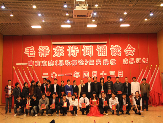 4月13日晚,在各班級(jí)層層選拔的基礎(chǔ)上,思政教研部在院大學(xué)生活動(dòng)中心舉辦了全院《思政概論》課實(shí)踐教學(xué)成果匯報(bào)——毛澤東詩(shī)詞誦讀會(huì)。參賽選手精神飽滿、充滿激情的誦讀,贏來(lái)評(píng)委老師和同學(xué)們的陣陣掌聲。35位選手經(jīng)過(guò)90分鐘的激烈角逐,共產(chǎn)生一等獎(jiǎng)3名、二等獎(jiǎng)5名、三等獎(jiǎng)7名、鼓勵(lì)獎(jiǎng)若干。通過(guò)這次活動(dòng),同學(xué)們加深了對(duì)黨和國(guó)家的締造者毛澤東偉人風(fēng)范的理解和認(rèn)識(shí),展現(xiàn)了當(dāng)代大學(xué)生的風(fēng)采,凸顯了實(shí)踐教學(xué)活動(dòng)的豐碩成果。