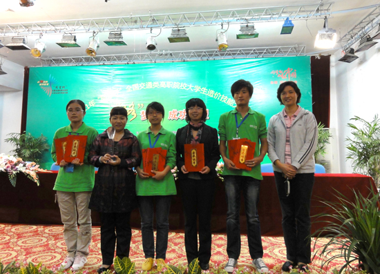由交通職業(yè)教育教學指導委員會主辦的2011年“同望杯”全國交通類高職院校大學生造價技能大賽,于2011年10月12日—14日在四川舉行。共有來自全國27所交通類高職院校的84名選手參與比賽,學院代表隊在路橋工程系蔣玲主任、羅云軍和張海霞老師帶領下,唐浩、張宏飛、陳莉三名學生參加了理論、實踐操作比賽,并獲得團體二等獎、個人理論考核一等獎2項、實踐操作二等獎1項和三等獎1項;個人全能(理論加實踐操作)一等獎1項、二等級1項,三等獎1項。