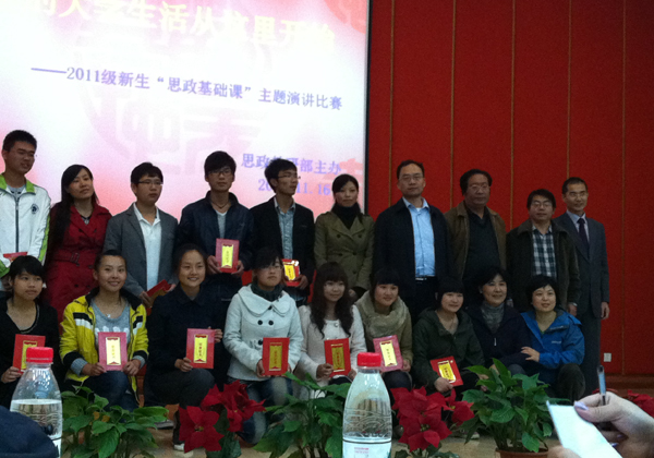 11月16日晚,學(xué)院2011級(jí)學(xué)生在大活中心226舉行“我的大學(xué)生活從這里開(kāi)始”主題演講比賽。在對(duì)2011級(jí)新生各班級(jí)全面開(kāi)展演講活動(dòng)的基礎(chǔ)上,有16名同學(xué)進(jìn)入了此次比賽。經(jīng)過(guò)激烈角逐,115012班薛起同學(xué)榮獲一等獎(jiǎng),116011班張長(zhǎng)艷、111062班劉凱迪、112081班張杰榮獲二等獎(jiǎng),同時(shí)還產(chǎn)生了5名三等獎(jiǎng)與7名優(yōu)秀獎(jiǎng)。本次活動(dòng)不僅鍛煉了選手的能力,展示了他們的才華,而且充分發(fā)揮了學(xué)生的主體作用,活動(dòng)的組織、開(kāi)展以及評(píng)委全部由學(xué)生承擔(dān),充分調(diào)動(dòng)了廣大同學(xué)的積極性,展現(xiàn)了本學(xué)期《思想道德修養(yǎng)與法律基礎(chǔ)》實(shí)踐教學(xué)的成果。