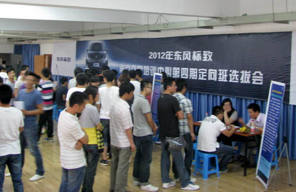 6月6日,2012年東風(fēng)標(biāo)致--南京交院第四期定向班學(xué)生選拔會在行健館舉行。江蘇萬幫、江蘇致成、上海海標(biāo)等華東地區(qū)8家東風(fēng)標(biāo)致品牌特約經(jīng)銷商參加了選拔會,為汽車工程系2013屆畢業(yè)生提供了65個機電維修、服務(wù)顧問職位。東風(fēng)標(biāo)致汽車公司服務(wù)和備件部技術(shù)分部培訓(xùn)室經(jīng)理代亮一行親臨現(xiàn)場,并與學(xué)院副院長高進軍作了會談。
