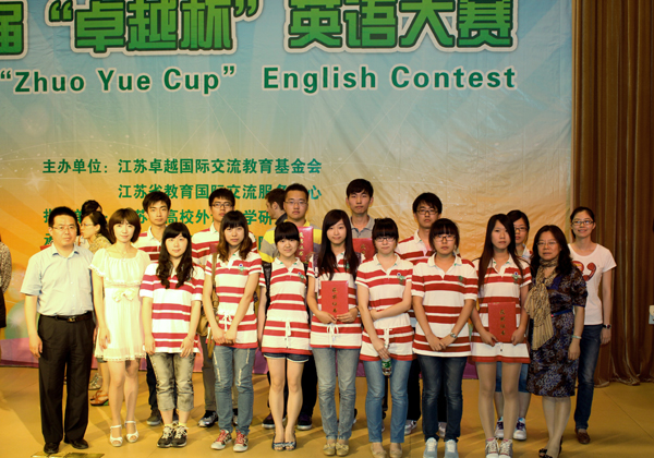 在6月8日上午由江蘇卓越國(guó)際交流教育基金會(huì)和江蘇省教育國(guó)際交流服務(wù)中心主辦的第二屆“卓越杯”英語(yǔ)大賽決賽中,國(guó)際教育學(xué)院海本項(xiàng)目2010級(jí)張偉、陳云杰、戴帆三名同學(xué)榮獲二等獲,4名選手獲得三等獎(jiǎng),6名選手獲得優(yōu)秀鼓勵(lì)獎(jiǎng)。他們分別獲得由卓越交流基金會(huì)提供的2000元、1000元和500元卓越留學(xué)獎(jiǎng)學(xué)金。