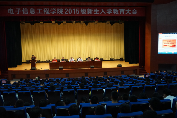 9月14日上午,電子信息工程學(xué)院2015級新生入學(xué)教育大會在圖書館一樓報告廳隆重舉行。院長吳兆明、黨總支副書記張守磊、副院長張鸰,全體輔導(dǎo)員、2015級班主任以及2015級全體新生參加了會議。