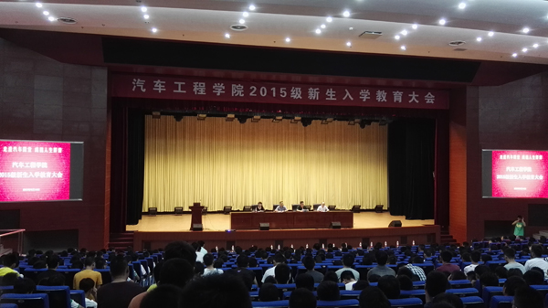 9月14日晚,學(xué)院圖書館報(bào)告廳內(nèi),汽車工程學(xué)院2015級新生入學(xué)教育大會在振奮人心的國歌聲中隆重舉行。汽車工程學(xué)院院長文愛民、黨總支書記康建軍、副院長陳林山、黨總支副書記滕兆霞,2015級新生班主任、輔導(dǎo)員及618名新生到會參加。