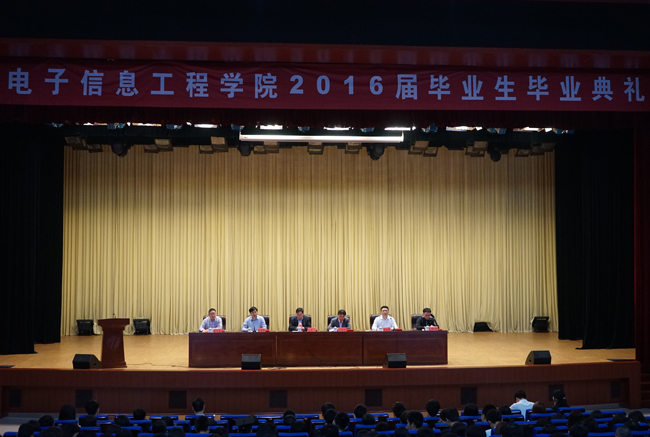 5月20日上午,電子信息工程學(xué)院2016屆畢業(yè)生畢業(yè)典禮在圖書館報(bào)告廳隆重舉行。副院長應(yīng)海寧,教務(wù)處處長祁洪祥、學(xué)工處處長王道峰及電子信息工程學(xué)院相關(guān)負(fù)責(zé)人出席典禮。各教研室主任、教師代表、畢業(yè)班班主任、輔導(dǎo)員老師、2016屆全體畢業(yè)生參加,典禮由電子信息工程學(xué)院院長吳兆明主持。