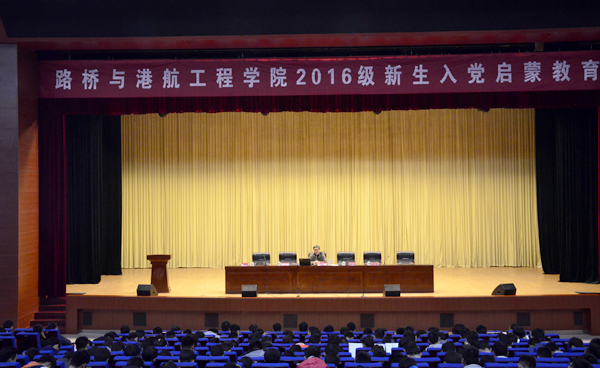11月21日下午,路橋與港航工程學(xué)院在圖書館報(bào)告廳舉行2016級(jí)新生入黨啟蒙教育講座。校關(guān)工委副主任,黨建兼職組織員胡維忠老師擔(dān)任主講。路橋與港航工程學(xué)院黨總支副書記彭涌濤,關(guān)工委副主任、特邀黨建組織員孟慶云,團(tuán)總支書記周波及2016級(jí)全體新生參加了講座。