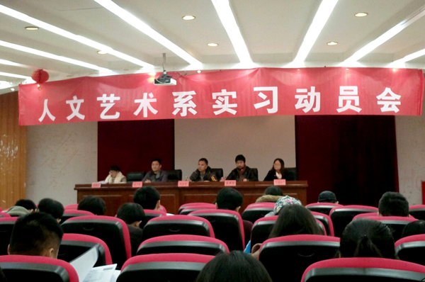 11月23日下午,人文藝術(shù)系在明德樓報(bào)告廳舉行了2017屆畢業(yè)生頂崗實(shí)習(xí)動員大會。系主任兼黨總支書記祁洪祥、副主任宋壽劍,黨總支副書記戴廣東、系辦和學(xué)工辦負(fù)責(zé)人出席,全體2017屆學(xué)生、各班班主任和教研室主任參加。會議由系副主任宋壽劍主持。