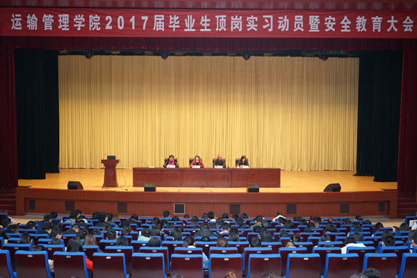 11月24日下午,運輸管理學院2017屆畢業(yè)生頂崗實習動員及安全教育大會在圖書館報告廳召開。保衛(wèi)處副處級干部祁國新,運輸管理學院全體領(lǐng)導、各教研室(部門)負責人、全體輔導員、畢業(yè)班班主任和參加頂崗實習的2017屆全體學生參加了大會,會議由黨總支書記王艷梅主持。