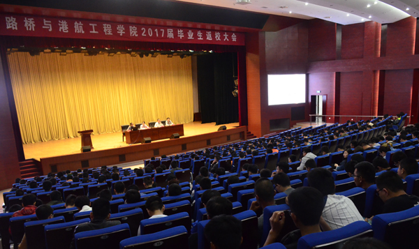 5月8日下午,路橋與港航工程學(xué)院在圖書館報告廳召開2017屆畢業(yè)生返校大會,副院長汪瑩、學(xué)工辦主任周波、畢業(yè)班班主任、輔導(dǎo)員老師及全體返校畢業(yè)生參加,會議由黨總支副書記彭涌濤主持。
