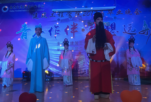 晚會伊始,大家觀看了同學(xué)們制作的畢業(yè)生歡送短片,一起回顧了一路走來的三年大學(xué)時光,見證了自己的成長點滴。晚會以熱舞《她很漂亮》開場,膾炙人口的歌曲、幽默的小品《兄弟別鬧》、《涼涼》、經(jīng)典的國粹《打嚴(yán)嵩》、《人情冷暖太可恨》、《賢弟抬頭來觀瞧》,激情的爵士舞《BangBang》、飽含深情的詩朗誦《我們一起走過的青春》,讓現(xiàn)場師生沉浸在滿滿的感動之中。晚會在合唱《當(dāng)》的歌聲中結(jié)束,畢業(yè)生們久久不愿離去,享受著他們在校的最后一次歡聚。