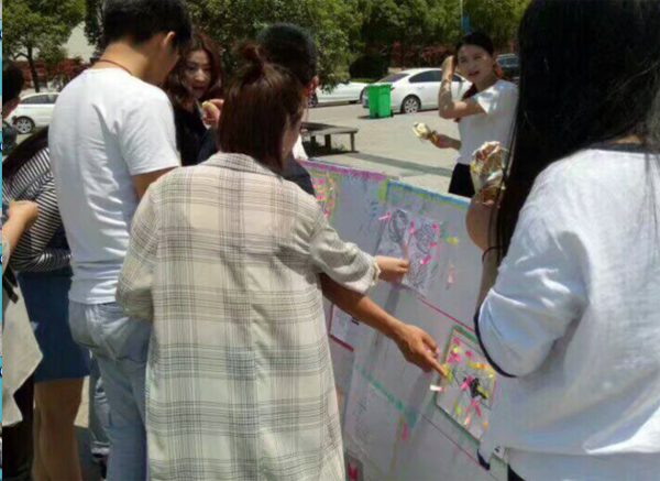 展覽在思源堂廣場(chǎng)舉辦,參展的優(yōu)秀設(shè)計(jì)作品均由全院參賽的100多份作品中遴選而出。設(shè)計(jì)大賽采用線上線下的評(píng)比方式,通過現(xiàn)場(chǎng)展覽及開辟微信公眾平臺(tái)專欄接受大眾投票。雖然展覽當(dāng)天烈日當(dāng)空,但富有創(chuàng)意的作品仍然吸引了眾多師生駐足觀看,大家紛紛拿起小貼士為各自心目中的NO.1投上寶貴的一票。經(jīng)過評(píng)比,161035班丁文佳獲得一等獎(jiǎng),161012班茍彥龍等三人獲得二等獎(jiǎng),161031班曹夢(mèng)清等三人獲得三等獎(jiǎng)。