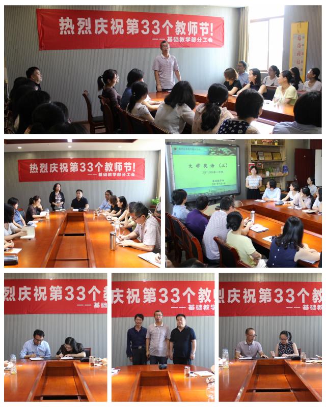 9月13日下午,基礎(chǔ)教學(xué)部舉辦了慶祝第33個(gè)教師節(jié)暨上好第一節(jié)課心得分享活動(dòng)。系部全體教職工聚集一堂,用向從教30周年教師致禮、老教師回顧如何上好第一節(jié)課、青年教師介紹開展云班課教學(xué)的體驗(yàn)、“青藍(lán)工程”結(jié)對(duì)拜師儀式等形式,分享教學(xué)心得,共慶教師自己的節(jié)日。