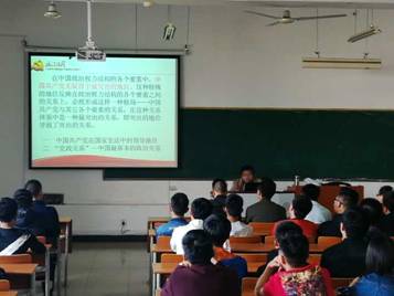 講座從當(dāng)代中國的黨政關(guān)系引入,分析介紹了中國共產(chǎn)黨與人大、政府、政協(xié)、司法機關(guān)、軍隊、人民團體的關(guān)系,強調(diào)黨在國家政權(quán)體系中的核心地位與作用。結(jié)合剛剛閉幕的十九大,為同學(xué)們詳細講解了黨的全國代表大會、黨的中央委員會、黨的中央紀(jì)律檢查委員會、中央政治局、中央政治局常委會、中央書記處的各自職責(zé)與相互關(guān)系。講座進一步堅定了同學(xué)們擁護中國共產(chǎn)黨的領(lǐng)導(dǎo)、堅定中國特色社會主義的理想信念。