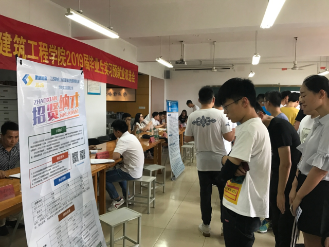 6月27日下午,建筑工程學(xué)院2019屆畢業(yè)生實(shí)習(xí)預(yù)選雙選會(huì)在廣宇樓302舉行。參會(huì)單位有江蘇滬寧鋼機(jī),中建二局、江蘇中南建筑產(chǎn)業(yè)集團(tuán)、浙江至方建設(shè)等12家企業(yè),主要來自于蘇浙皖地區(qū),向我院2019屆建筑工程技術(shù)專業(yè)的44名畢業(yè)生提供了包括施工員、安全員、資料員、監(jiān)理員、測量員在內(nèi)超過100個(gè)對口率極高的實(shí)習(xí)崗位。