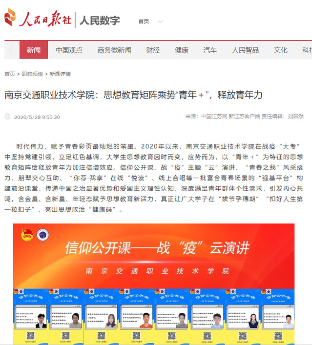 【人民日報(bào)社·人民數(shù)字】南京交通職業(yè)技術(shù)學(xué)院:思想教育矩陣乘勢“青年+”,釋放青年力
