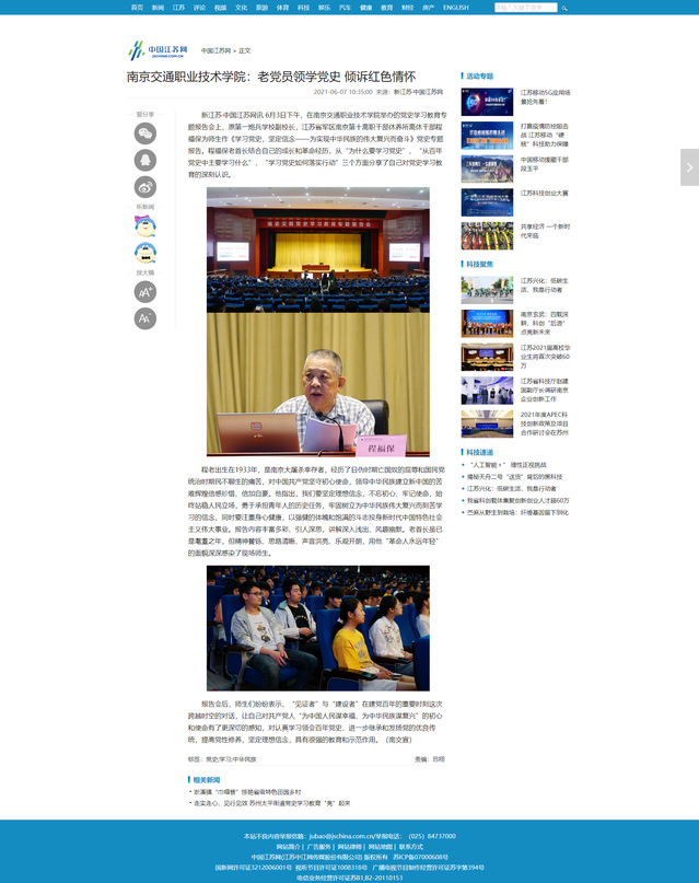 【中國(guó)江蘇網(wǎng)】南京交通職業(yè)技術(shù)學(xué)院:老黨員領(lǐng)學(xué)黨史 傾訴紅色情懷