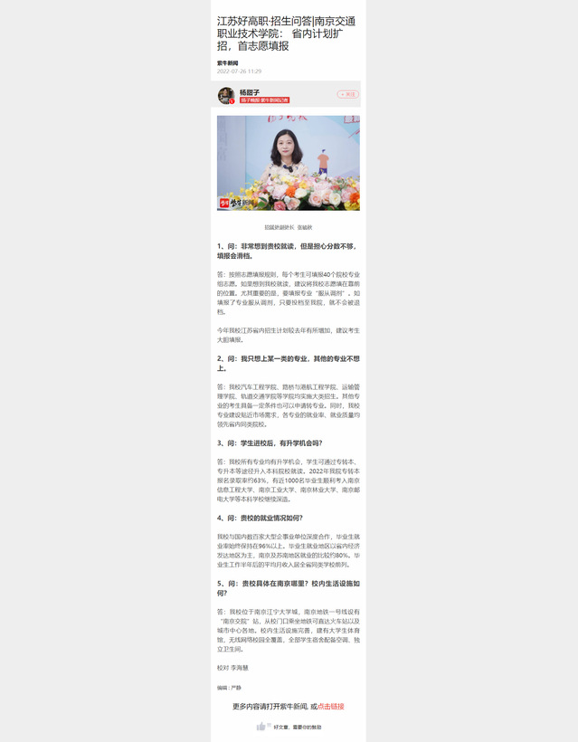 【紫牛新聞】江蘇好高職·招生問答|南京交通職業(yè)技術(shù)學(xué)院: 省內(nèi)計(jì)劃擴(kuò)招,首志愿填報(bào)