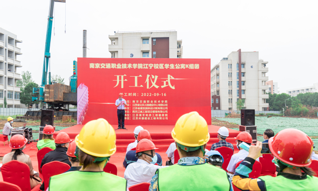 在隆隆的機械鳴笛啟動聲和熱鬧喜慶的開工氛圍中,張毅院長宣布“南京交通職業(yè)技術(shù)學院學生公寓K組團項目正式開工”。