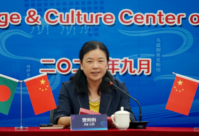 揭牌儀式上,賈書(shū)記發(fā)表了熱情洋溢的致辭,她介紹了學(xué)院的辦學(xué)特色、國(guó)際交流合作的成績(jī)和來(lái)華留學(xué)生教育的豐富成果,并表示中孟友誼源遠(yuǎn)流長(zhǎng),漢語(yǔ)承載著中華五千年文明,也搭建起中孟交流的友誼之橋,本次孟加拉國(guó)漢語(yǔ)言文化交流中心的成立,是南京交院留學(xué)生人才培養(yǎng)的重要成果體現(xiàn),也是加深中孟文化合作交流,書(shū)寫(xiě)中孟友誼華章的的創(chuàng)新舉措。期待著中孟雙方使用好這個(gè)平臺(tái),創(chuàng)造出更加豐碩的成果。