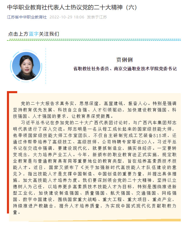 【江蘇省中華職業(yè)教育社】中華職業(yè)教育社代表人士熱議黨的二十大精神