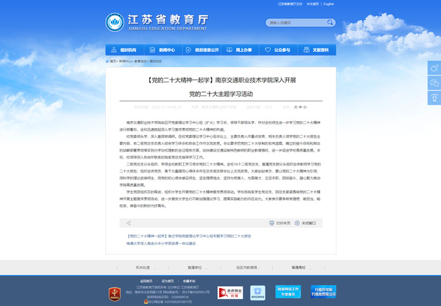 【江蘇省教育廳官網(wǎng)】南京交通職業(yè)技術(shù)學(xué)院深入開展黨的二十大主題學(xué)習(xí)活動