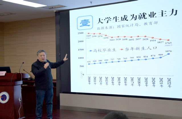 江蘇省高校招生就業(yè)指導服務中心黨總支委員蔣晨陽通過對全省和學院畢業(yè)生調研數據的分析,深度解讀了學院近三年畢業(yè)生培養(yǎng)質量情況。他對南京交院畢業(yè)生的就業(yè)質量和人才培養(yǎng)質量作出了高度評價,特別在疫情常態(tài)化下,學院畢業(yè)生的就業(yè)質量在省內仍保持較高水平,在崗位來源、專業(yè)相關度、地區(qū)貢獻度于全省前列,為江蘇省地方經濟建設培養(yǎng)了大量人才,形成了立足交通行業(yè)的人才培養(yǎng)特色。同時希望學院通過對調研數據的深入分析完善學院人才培養(yǎng)方案,把促進全面育人和社會需求融合作為學院就業(yè)育人的使命擔當。