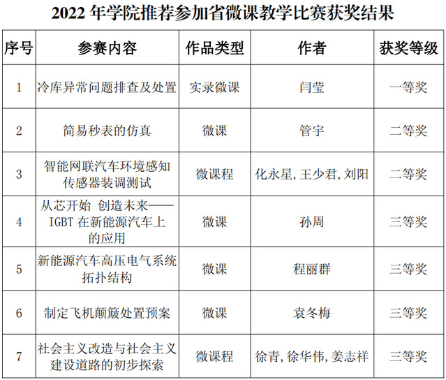 近日,2022年江蘇省高校微課比賽評選結果揭曉,此次比賽學院共計報送9項作品,有7項作品獲獎,其中一等獎作品1項、二等獎作品2項、三等獎作品4項,獲獎數(shù)量在全省高職院校中名列前茅。