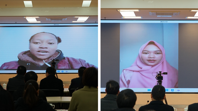 會上,來自老撾、非洲、印尼留學生校友分會的校友代表萬淑怡、媞婭、蒂娜同學分別通過視頻和發(fā)言展示了自己在家鄉(xiāng)的近況并回顧了在交院學習生活的美好時光,表示今后將繼續(xù)做好中外友誼的使者,通過校友會這個平臺,以飽滿的熱情把留學生校友們組織好、服務(wù)好。