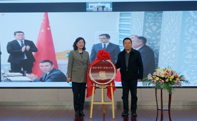 在熱烈的氛圍中,賈俐俐和烏斯曼庫洛夫·阿利舍爾作為兩校代表共同簽署合作協(xié)議并為鄭和學(xué)院·寶船工坊揭牌。