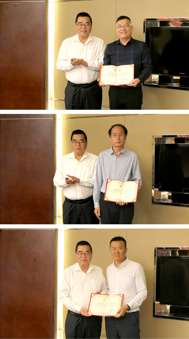 院長(zhǎng)、校友會(huì)會(huì)長(zhǎng)張毅為南通校友分會(huì)名譽(yù)會(huì)長(zhǎng)、會(huì)長(zhǎng)、秘書(shū)長(zhǎng)頒發(fā)聘書(shū)。