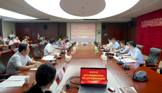 5月16日下午,由國(guó)家督學(xué)、省教育廳原一級(jí)巡視員林偉擔(dān)任組長(zhǎng),南京工業(yè)大學(xué)學(xué)生工作處副處長(zhǎng)齊鵬、鹽城工業(yè)職業(yè)技術(shù)學(xué)院學(xué)工處處長(zhǎng)孫干、江蘇省高校招生就業(yè)指導(dǎo)服務(wù)中心笪銀鋒為成員的省2023屆普通高校畢業(yè)生就業(yè)工作專項(xiàng)督導(dǎo)第三工作組來(lái)校督查2023屆畢業(yè)生就業(yè)工作。學(xué)院黨委書記賈俐俐,院長(zhǎng)張毅,學(xué)院就業(yè)工作領(lǐng)導(dǎo)小組成員、就業(yè)工作專兼職教師及部分畢業(yè)生代表全程參與了督查工作。