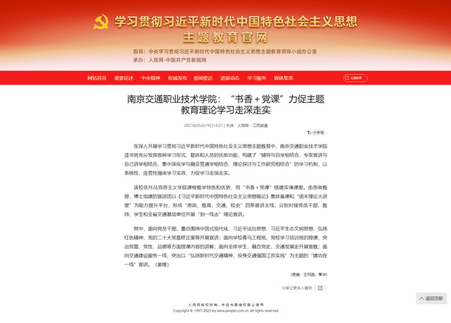 【學(xué)習(xí)貫徹習(xí)近平新時代中國特色社會主義思想主題教育官網(wǎng)】南京交通職業(yè)技術(shù)學(xué)院:“書香+黨課”力促主題教育理論學(xué)習(xí)走深走實
