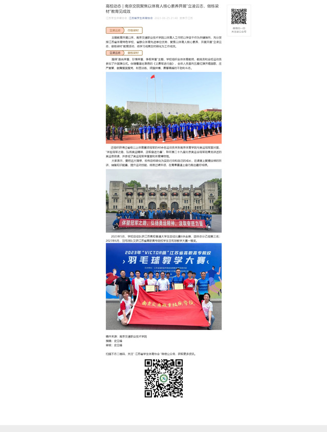 【江蘇省學(xué)生體育協(xié)會】高校動態(tài) | 南京交院聚焦以體育人核心素養(yǎng)開展“立凌云志,做棟梁材”教育見成效
