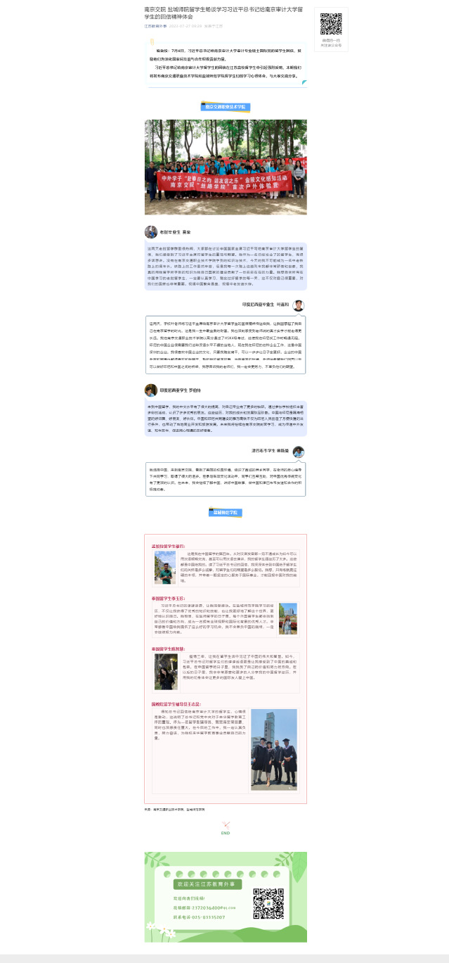 【江蘇教育外事】南京交院 鹽城師院留學(xué)生暢談學(xué)習(xí)習(xí)近平總書記給南京審計大學(xué)留學(xué)生的回信精神體會