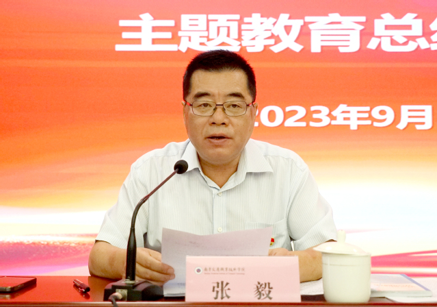 張毅指出,自主題教育開展以來,全院各級(jí)黨組織堅(jiān)持一盤棋,同步推進(jìn)、整體聯(lián)動(dòng),深入學(xué)習(xí)貫徹習(xí)近平總書記關(guān)于主題教育的講話精神,在省委主題教育第十七巡回指導(dǎo)組的堅(jiān)強(qiáng)領(lǐng)導(dǎo)下,牢牢把握“學(xué)思想、強(qiáng)黨性、重實(shí)踐、建新功”總要求,緊密結(jié)合學(xué)院工作實(shí)際,精心謀劃、周密部署,以高度的政治責(zé)任感和使命感,一體推進(jìn)理論學(xué)習(xí)、調(diào)查研究、推動(dòng)發(fā)展、檢視整改,確保主題教育高起點(diǎn)開局、高標(biāo)準(zhǔn)推進(jìn)、高質(zhì)量完成,切實(shí)將主題教育成果轉(zhuǎn)化為堅(jiān)定理想、錘煉黨性、指導(dǎo)實(shí)踐、推動(dòng)工作的強(qiáng)大動(dòng)力。一是建立“三學(xué)模式”,突出“三帶三入”,營造“比學(xué)趕超”濃厚氛圍。二是把準(zhǔn)民生之需,圍繞“三進(jìn)三解”開展調(diào)查研究,通過“三步走”工作法著力推動(dòng)調(diào)研成果轉(zhuǎn)化運(yùn)用。三是堅(jiān)持實(shí)干篤行,牢固樹立以師生為中心的發(fā)展思想,深化“三個(gè)一線”行動(dòng),持續(xù)提升“幸福交院”建設(shè)質(zhì)量和水平。四是堅(jiān)持對(duì)標(biāo)對(duì)表,建立“黨委統(tǒng)攬、領(lǐng)導(dǎo)牽頭、師生檢驗(yàn)”檢視整改機(jī)制,切實(shí)將主題教育成果轉(zhuǎn)化為推動(dòng)學(xué)院高質(zhì)量發(fā)展的強(qiáng)大動(dòng)力。五是強(qiáng)化組織領(lǐng)導(dǎo),引導(dǎo)全體黨員干部用黨的創(chuàng)新理論武裝頭腦、指導(dǎo)實(shí)踐、推動(dòng)工作,確保主題教育取得實(shí)實(shí)在在的成效。